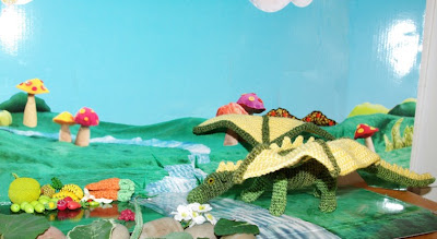 Alla de pyttesmå och helt underbara frukter och grönsaker (utom de virkade morötterna) som sågs i drakdalen kommer från LadyNights bloggshop Smått & Gott.